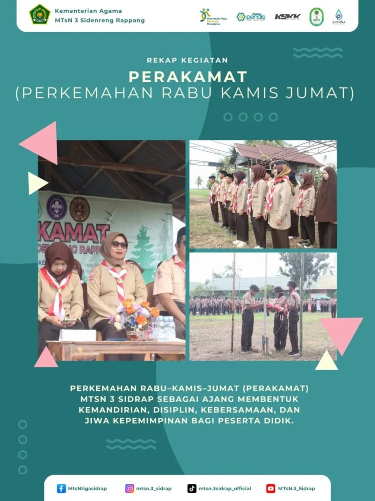 Dengan suksesnya pelaksanaan PERAKAMAT, MTsN 3 Sidrap kembali membuktikan diri sebagai lembaga pendidikan yang berkomitmen penuh dalam mencetak peserta didik yang berkarakter, bermental baja, dan siap menjadi pemimpin masa depan.